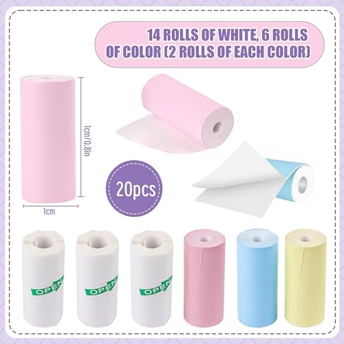 20 Rollen Mini Drucker Sticker,Thermopapier für Kinderkamera,14 Rollen Weiß und 6 Rollen Bunt Mini Drucker Papier,Thermopapier Sofortbildkameras,Drucker Papier für Mini Mobiler Fotodrucker(57 * 25 mm)